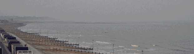 If you go to the cliffs of Old Felixstowe when the low tide mark is around its seasonal extreme, you should be able to view some of the seaweed-shrouded remains of the walls of the Roman Saxon Shore fortress known as Walton Castle. I took the picture below from the cliff-top at very low tide looking northeast towards the mouth of the Deben and Bawdsey. Part of the remains can be seen in the centre of the picture in the water about fifty yards out beyond the end of the groynes. More tumbled masonry lies deeper and further out beneath the waves.